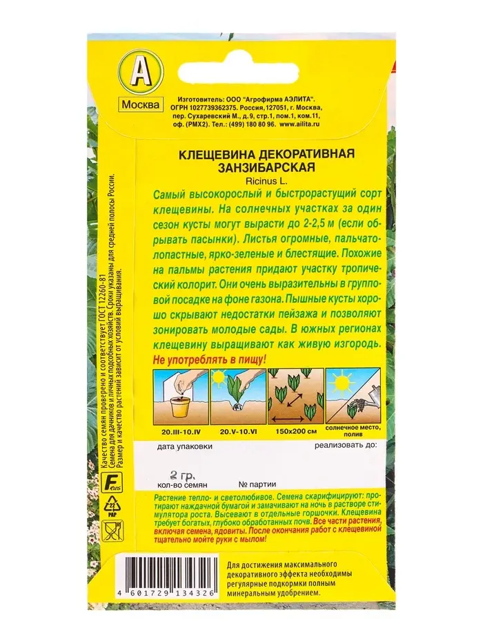Семена цветов Клещевина Занзибарская , Ц/П,2 г