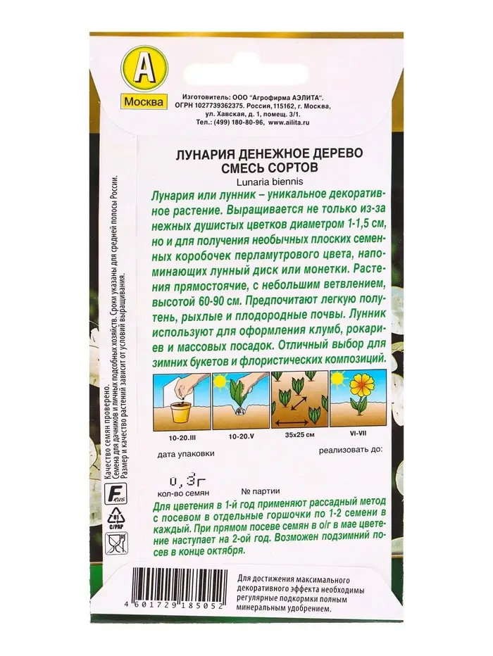 Семена цветов Лунария Денежное дерево, смесь сортов Дв Золотая серия, Ц/П,0,3 г