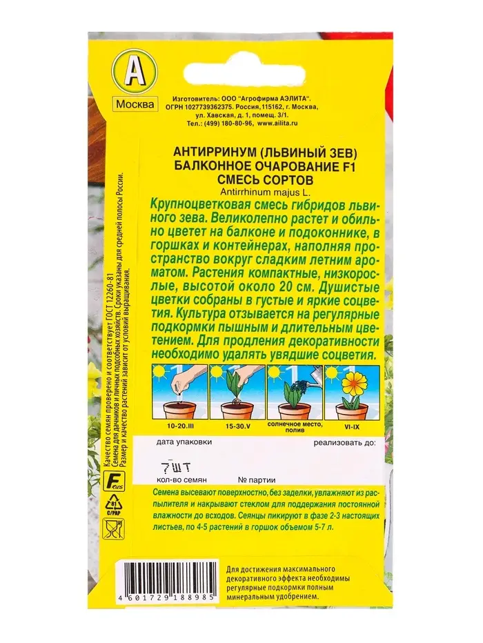 Семена цветов Львиный зев Балконное очарование F1, смесь сортов Цветущий балкон, Ц/П,7 шт.
