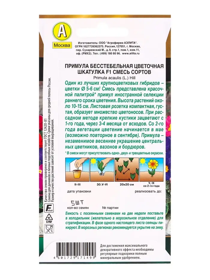 Семена цветов Примула Цветочная шкатулка F1, смесь сортов Мн Золотая серия, Ц/П,5 шт.