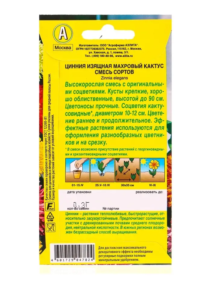 Семена цветов Цинния Махровый кактус, смесь сортов , Ц/П,0,3 г