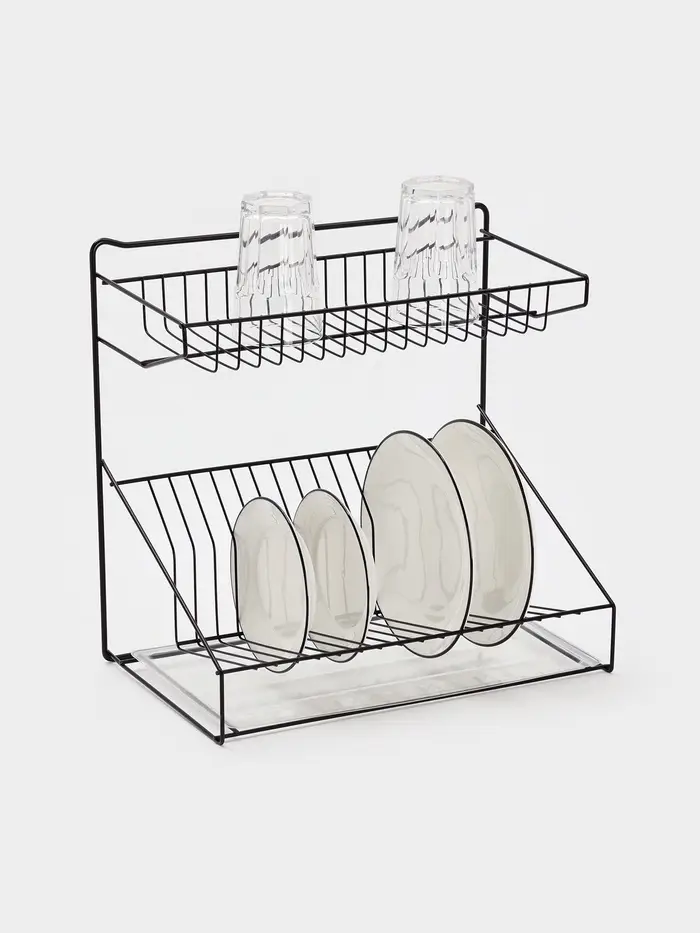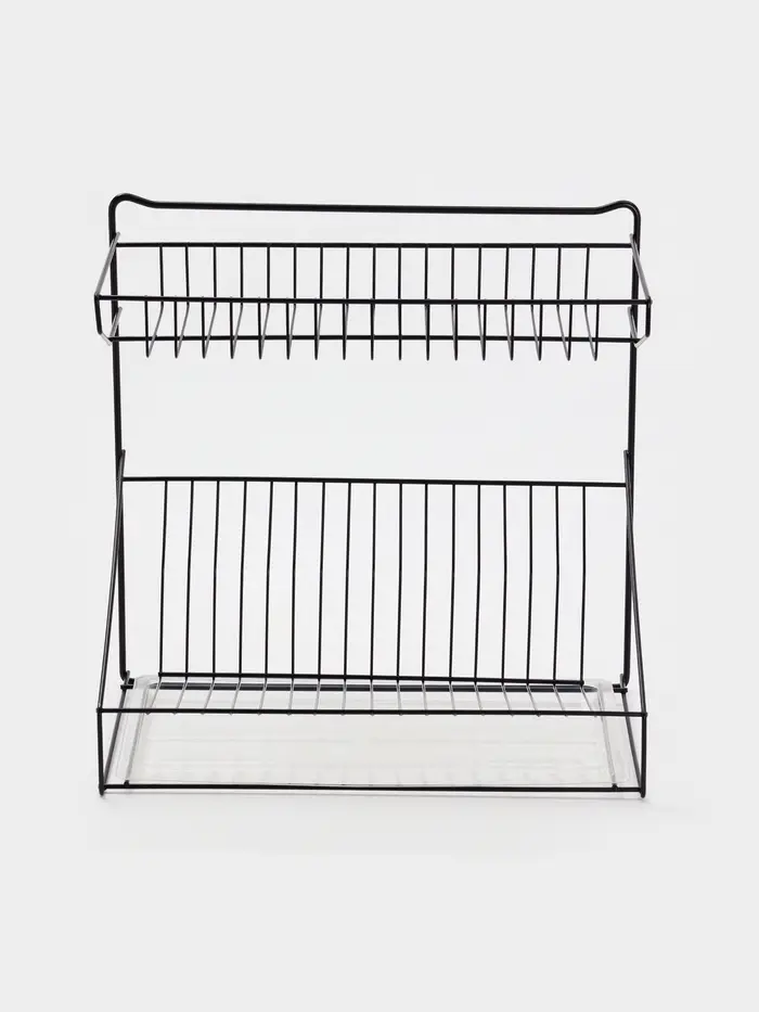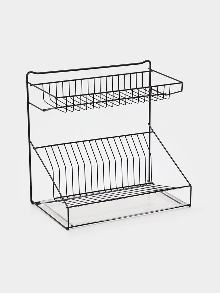 Посудосушитель настольный с поддоном, 38,5*38,5*24 см, цвет черный