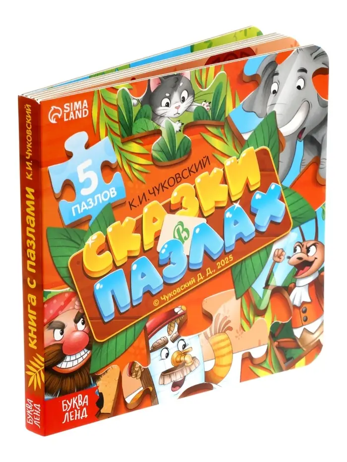 Книга картонная "Сказки в пазлах", 5 пазлов, 12 стр., Корней Чуковский