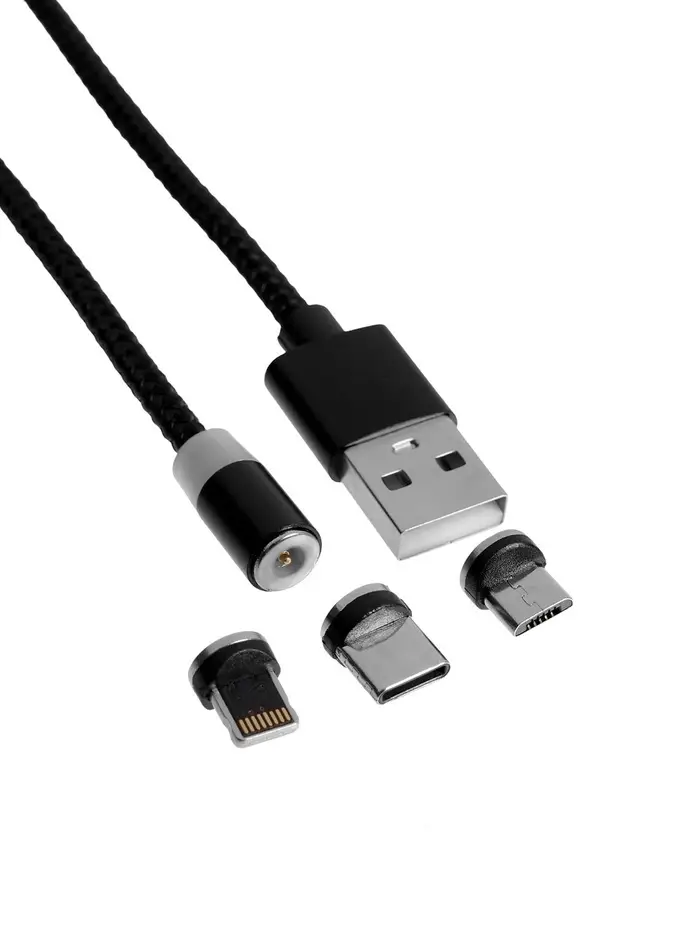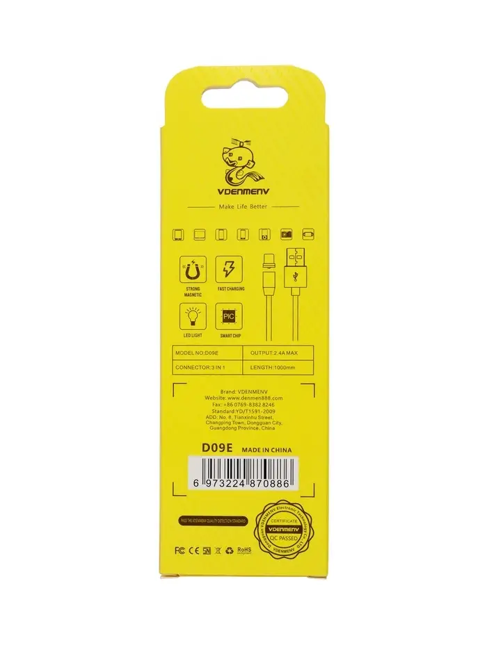 Кабель D09E,3 в 1, Type-C-microUSB-Lightning, 1м, зарядка+передача данных,магнитный,черный