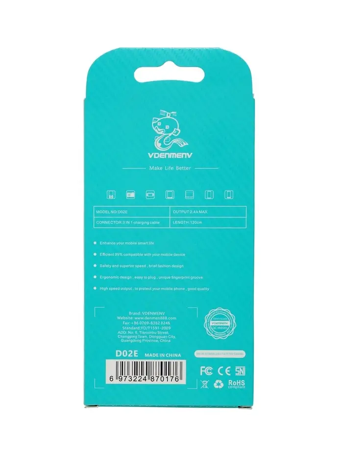 Кабель D02E, 3 в 1, Type-C-microUSB-Lightning, 1.2 м, зарядка+передача данных, чёрный