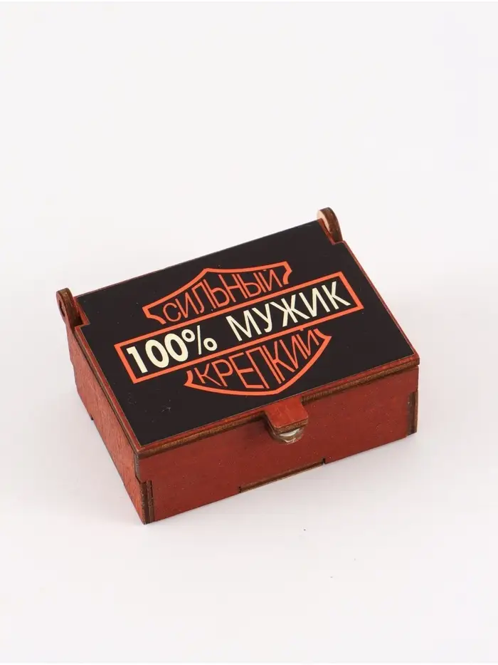 Коробка подарочная деревянная «100% мужик» 8,5 х 6 х 3,5 см