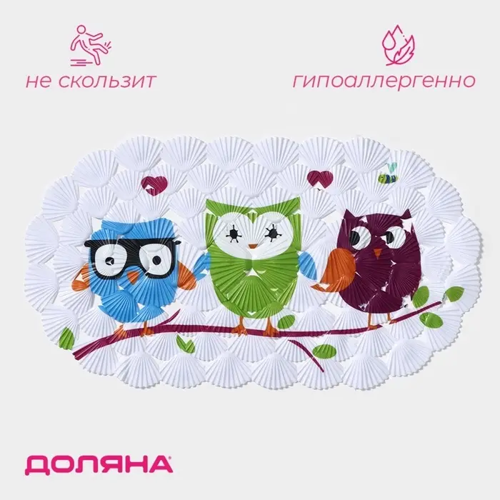 Коврик противоскользящий в ванну на присосках Доляна «Совы», 37×67 см