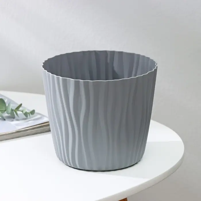 Кашпо для цветов со вставкой «Волна», 2 л, d=16 см, h=13,5 см, цвет серый