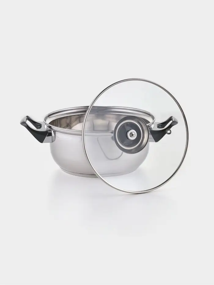 - Полноценный набор для кухни: В комплекте три кастрюли разного литража и универсальная сковорода. Этого достаточно для одновременного приготовления первого, второго блюда и гарнира. Четыре стеклянные крышки плотно прилегают, сохраняя аромат и тепло.