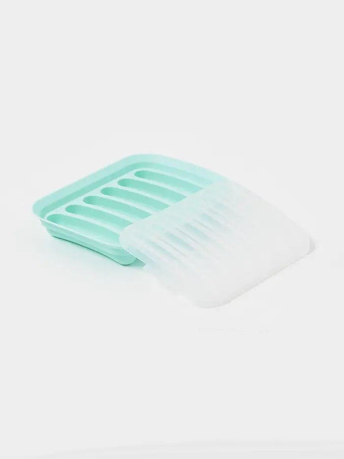 Форма для выпечки и приготовления сосисок Доляна, 6 ячеек, с крышкой, 17.5×13.5,2.8 см, силикон, бирюзовый