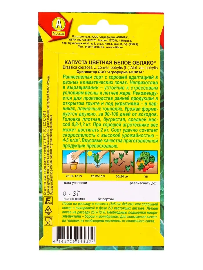 Семена Капуста цветная Белое облако Р, Ц/П,0,3 г