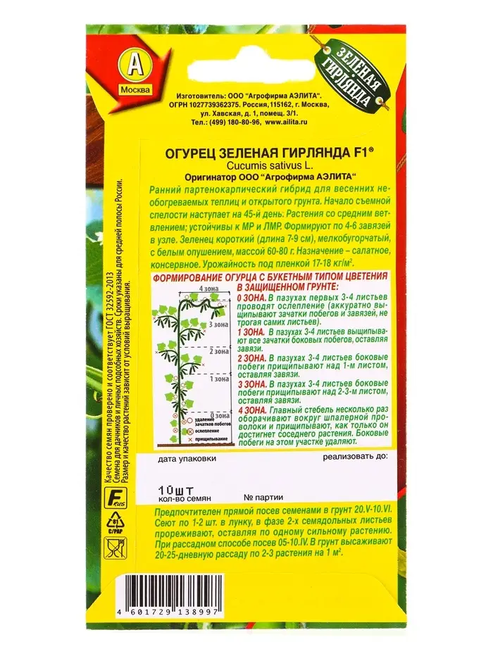 Семена Огурец Зеленая гирлянда F1 Парт Зеленая гирлянда, Ц/П,10 шт.