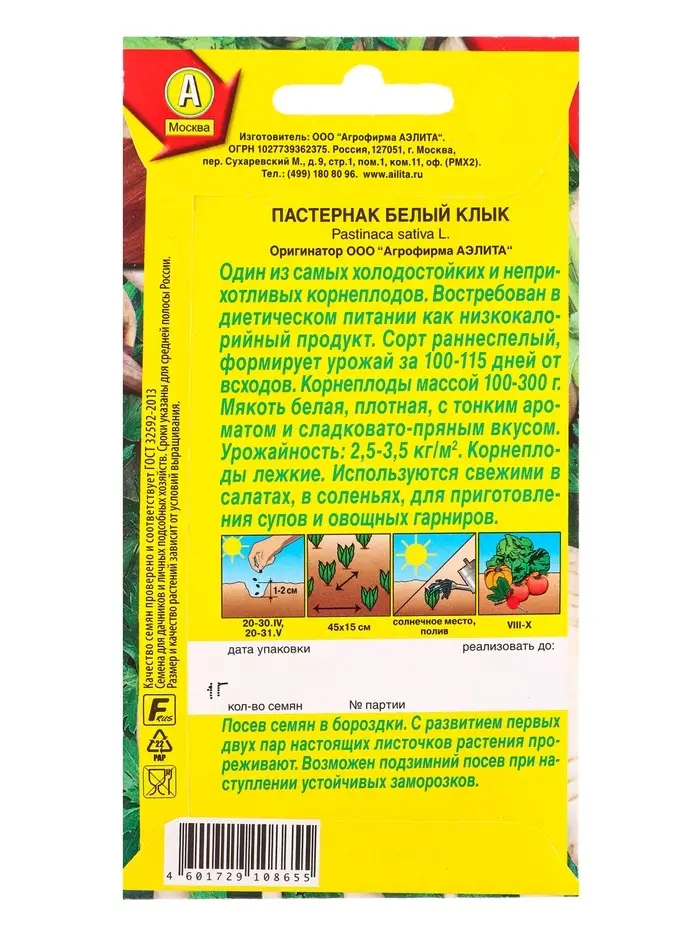 Семена Пастернак Белый клык Ор. А, Ц/П,1 г
