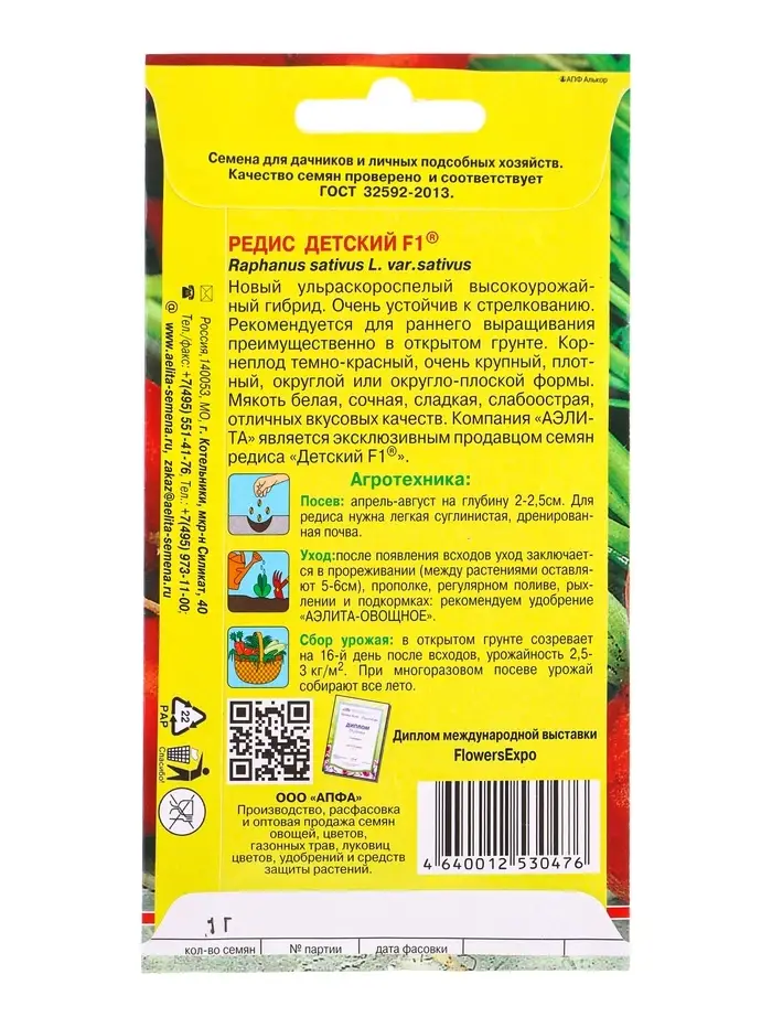 Семена Редис Детский F1 А/З, Ц/П,1 г