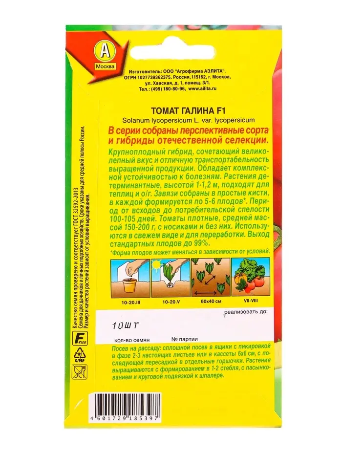 Семена Томат Галина F1 Отечественная С.екция, Ц/П,10 шт.