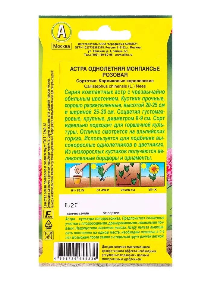 Семена цветов Астра Монпансье розовая , Ц/П,0,2 г