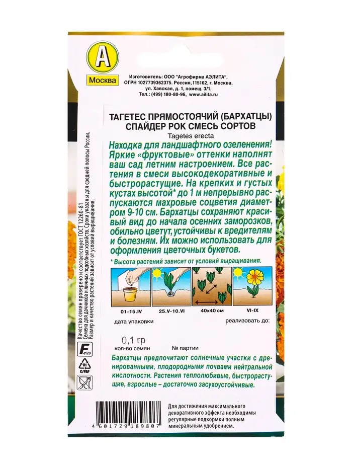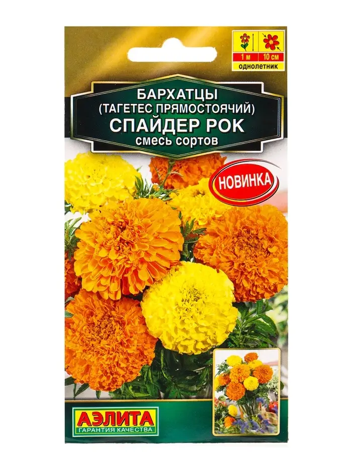 Семена цветов Бархатцы Спайдер рок прямостоячие, смесь сортов Золотая серия, Ц/П,0,1 г