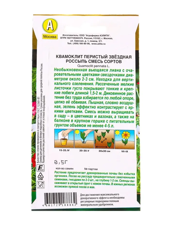 Семена цветов Квамоклит перистый Звездная россыпь, смесь сортов Золотая серия, Ц/П,0,5 г