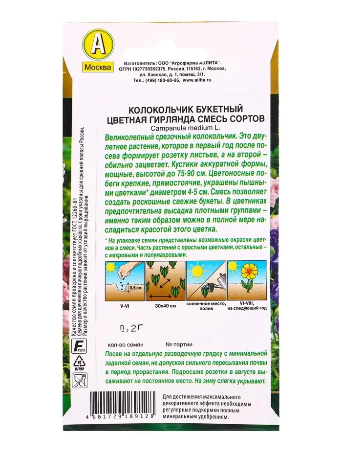 Семена цветов Колокольчик букетный Цветная гирлянда, смесь сортов Дв Золотая серия, Ц/П,0,2 г 109455