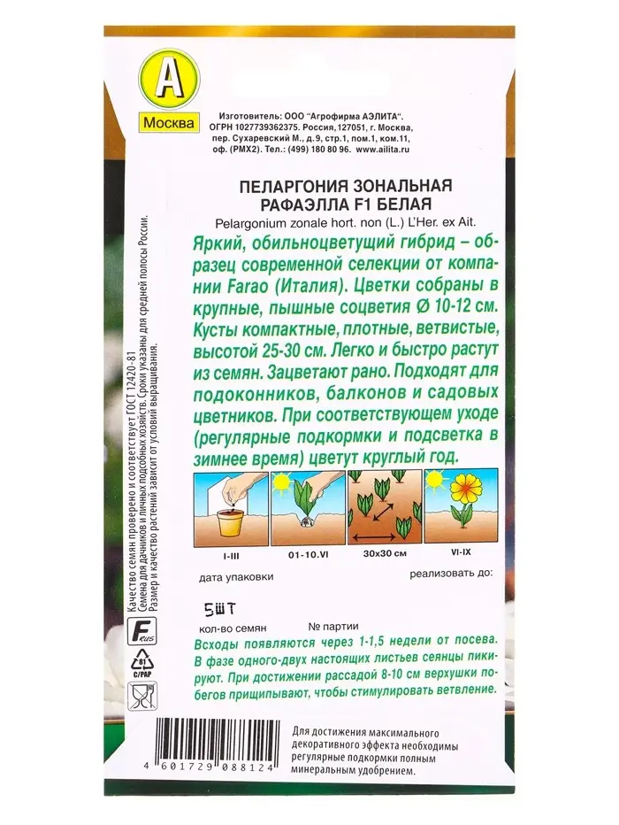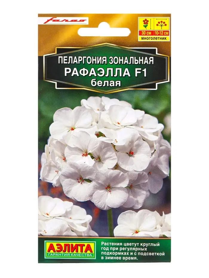 Семена цветов Пеларгония Рафаэлла F1 белая Мн С. Farao Золотая серия, Ц/П,5 шт.