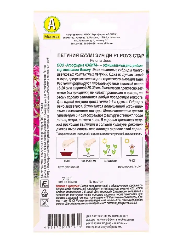 Семена цветов Петуния БУУМ! Эйч Ди F1 Роуз Стар многоцветковая (драже) Benary, Ц/П,7 шт.