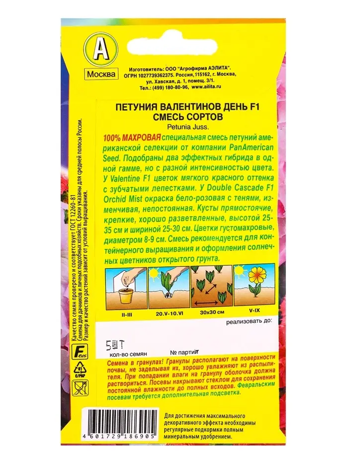 Семена цветов Петуния Валентинов день F1 махровая, смесь сортов (драже в пробирке), Ц/П,5 шт. 10945