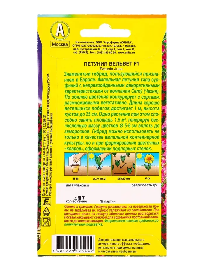 Семена цветов Петуния Вельвет F1 ампельная (драже в пробирке) С. Cerny, Ц/П,4 шт.