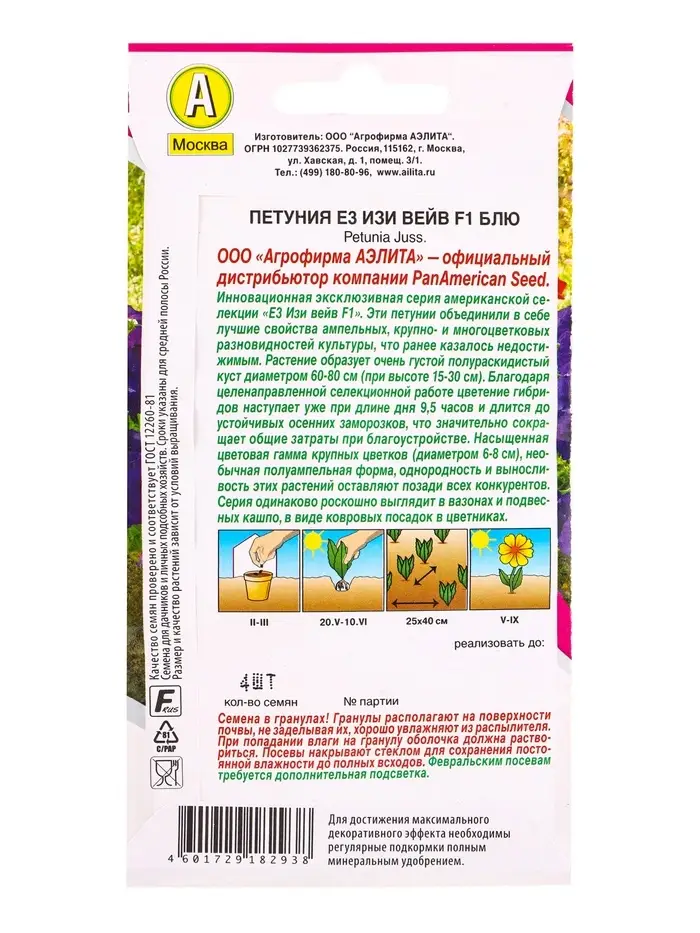 Семена цветов Петуния Е3 Изи Вейв F1 блю (драже) PanAmerican Wave, Ц/П,4 шт.