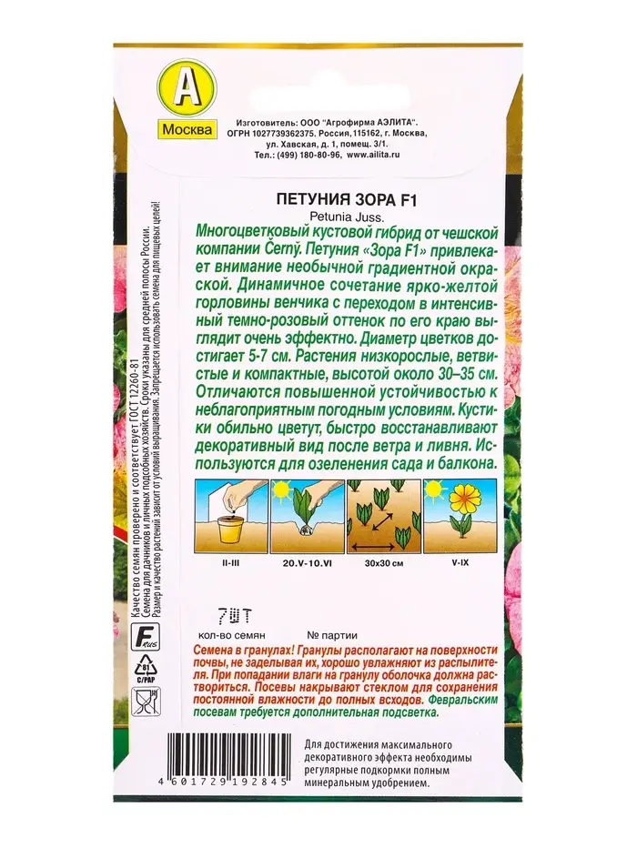 Семена цветов Петуния Зора F1 многоцветковая (драже) С. Cerny , Ц/П,7 шт.