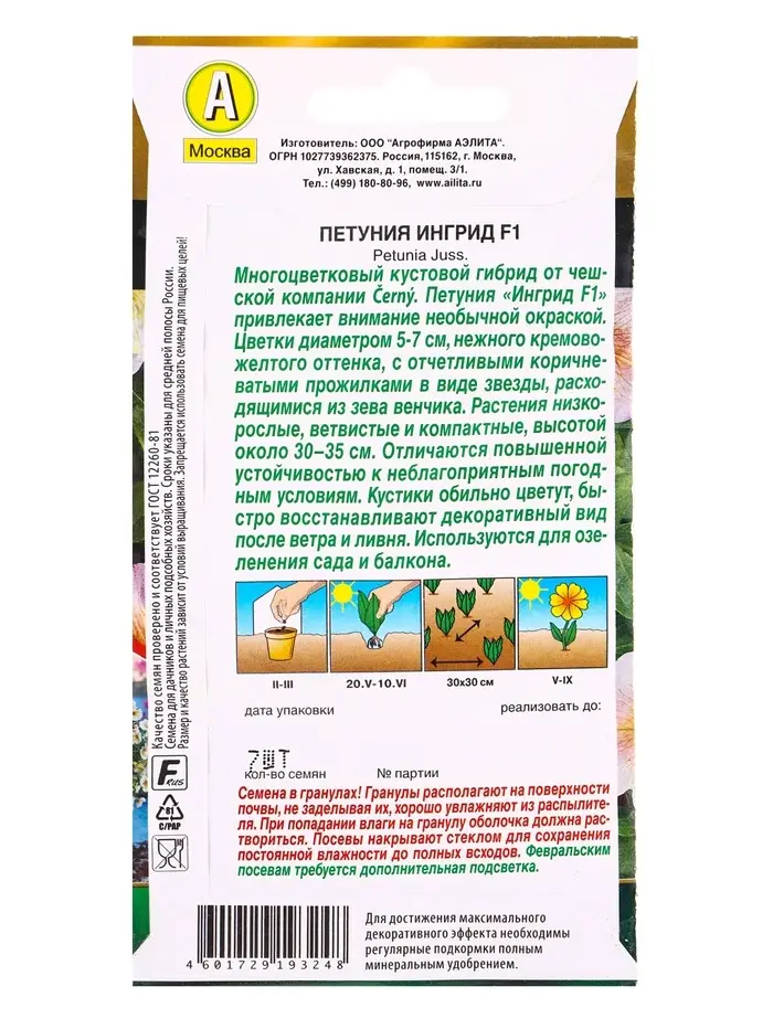Семена цветов Петуния Ингрид F1 многоцветковая (драже) С. Cerny , Ц/П,7 шт.
