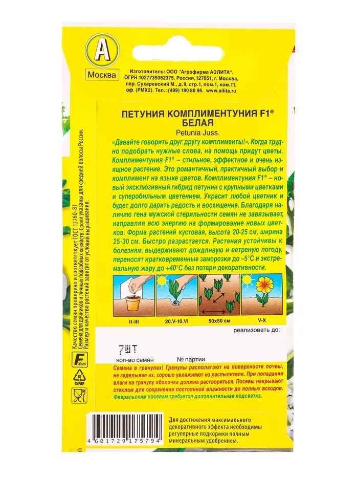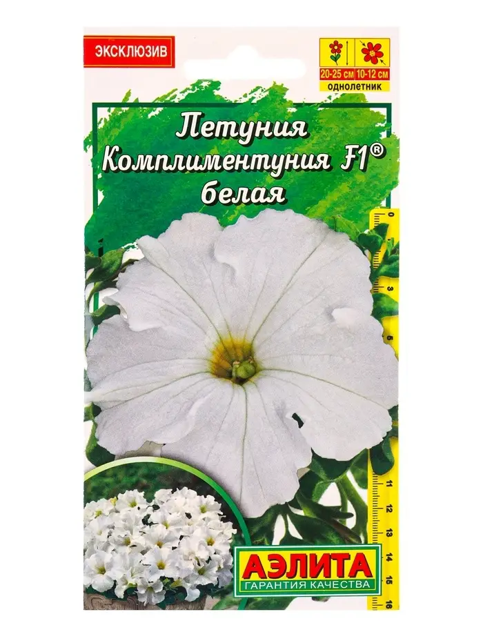 Семена цветов Петуния Комплиментуния F1 белая крупноцветковая (драже в пробирке), Ц/П,7 шт. 1094573