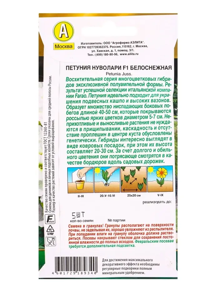 Семена цветов Петуния Нуволари F1 полуампельная белоснежная (драже) С. Farao , Ц/П,5 шт.