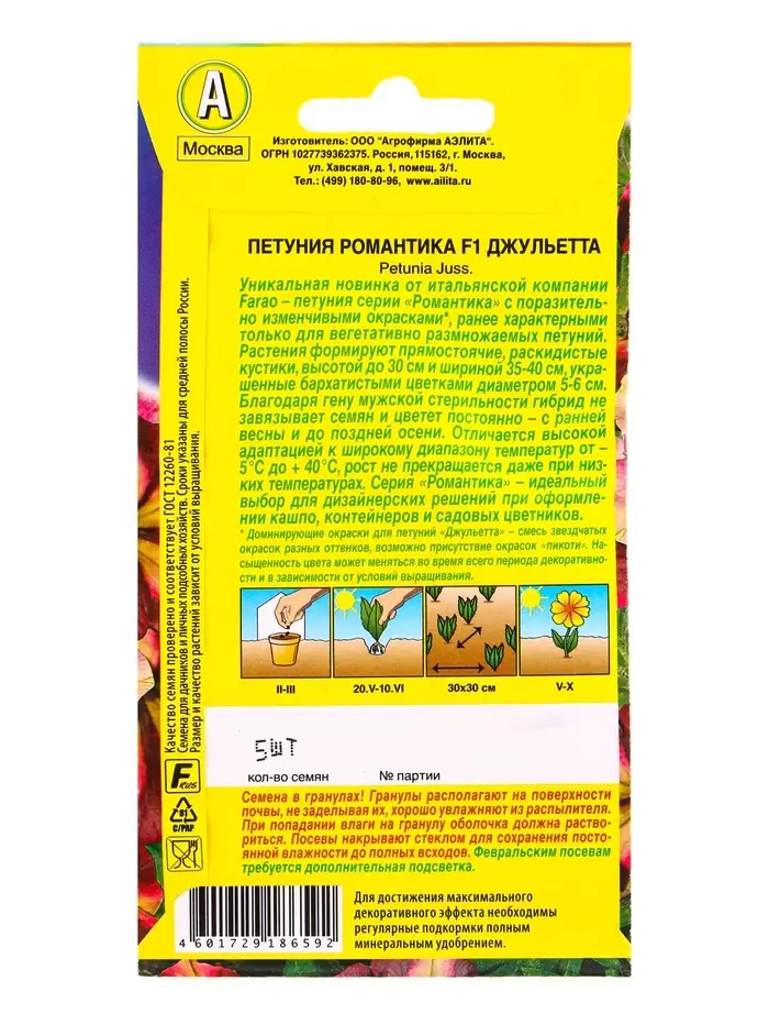 Семена цветов Петуния Романтика F1 джульетта (драже в пробирке) С. Farao, Ц/П,5 шт.