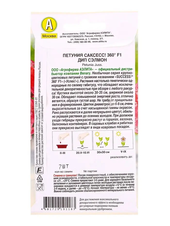 Семена цветов Петуния САКСЕСС! 360° F1 Дип Сэлмон (драже в пробирке) Спецсерия Benary, Ц/П,7 шт. 10