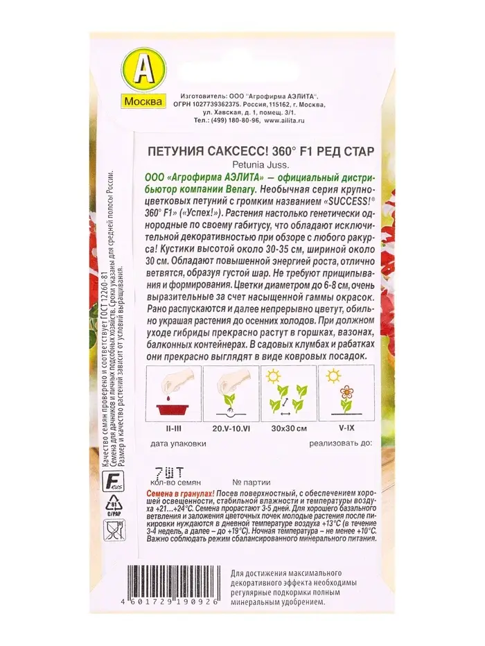 Семена цветов Петуния САКСЕСС! 360° F1 Ред Стар (драже в пробирке) Спецсерия Benary, Ц/П,7 шт. 1094