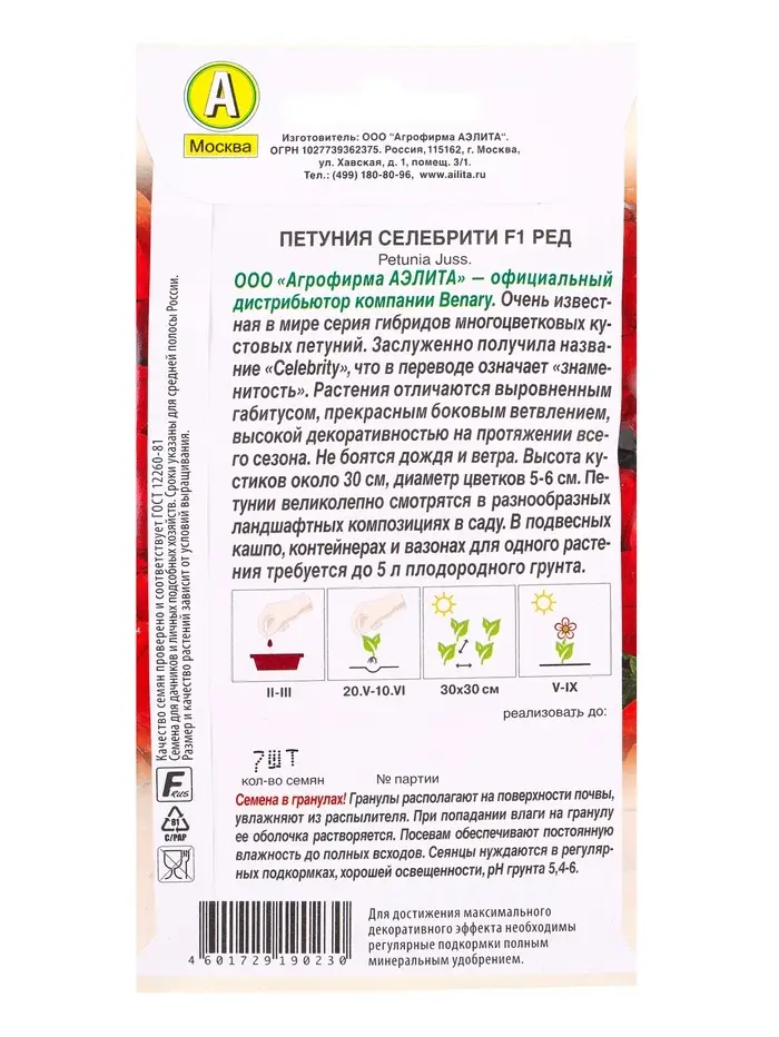 Семена цветов Петуния «Селебрити», F1, красная, многоцветковая, драже, Benary, 7 шт.