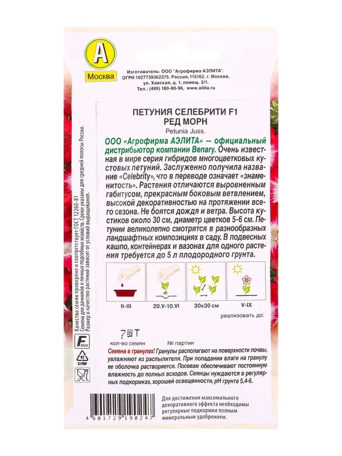 Семена цветов Петуния «Селебрити», F1, многоцветковая, драже, Benary, 7 шт.