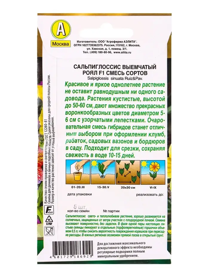 Семена цветов Сальпиглоссис Роял F1, смесь сортов Золотая серия, Ц/П,5 шт.