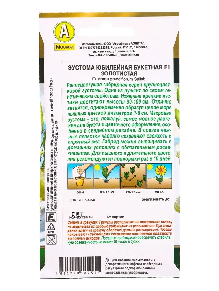 Семена цветов Эустома Юбилейная букетная F1 махровая золотистая (драже) , Ц/П,5 шт.