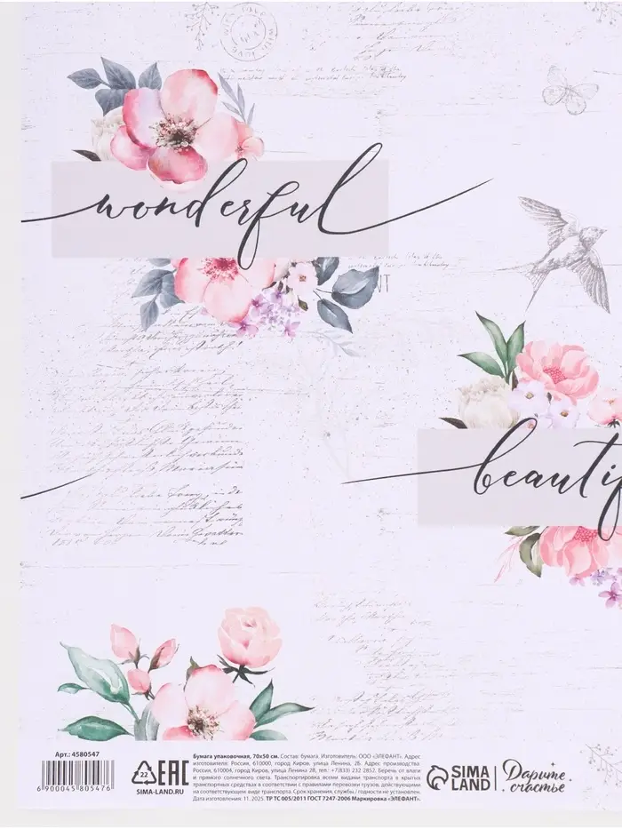 Бумага упаковочная крафт «Нежность», 50×70 см