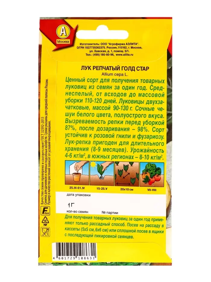 Семена Лук репчатый Голд стар Дв, Ц/П,1 г