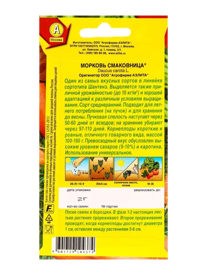 Семена Морковь Смаковница , Ц/П,2 г