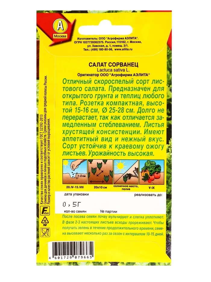 Семена Салат Сорванец листовой Ор. А, Ц/П,0,5 г