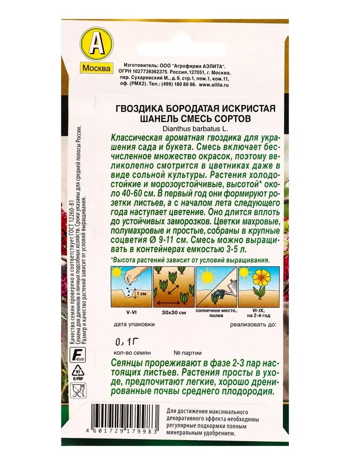 Семена цветов Гвоздика Искристая Шанель, смесь сортов Дв Золотая серия, Ц/П,0,1 г