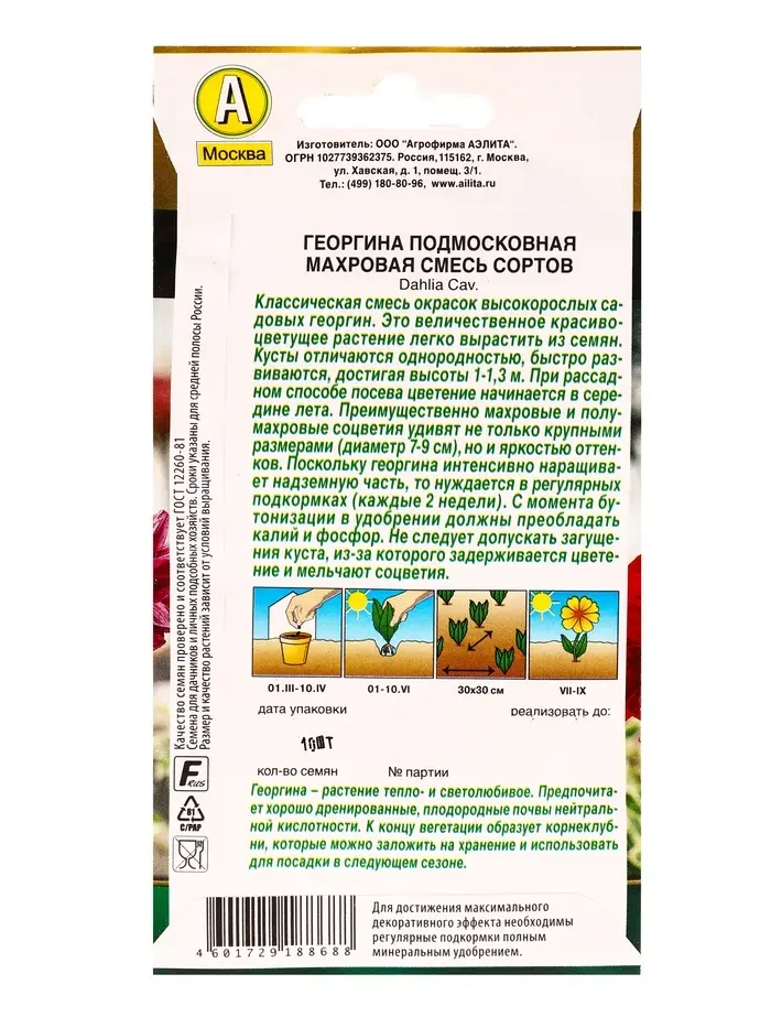 Семена цветов Георгина Подмосковная махровая, смесь сортов Золотая серия, Ц/П,10 шт.