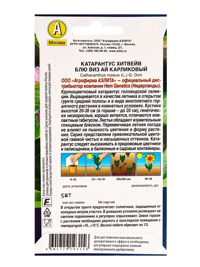 Семена цветов Катарантус Хитвейв блю виз ай карликовый Спецсерия Hem Genetics, Ц/П,5 шт.