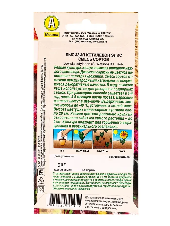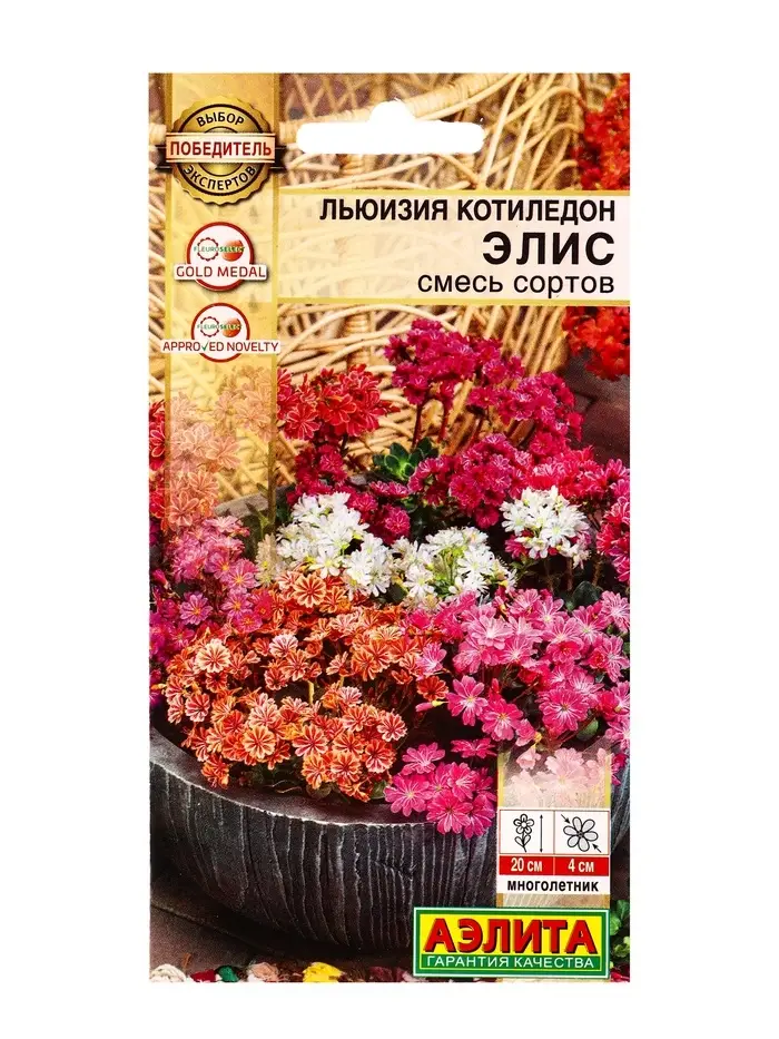 Семена цветов Льюизия котиледон Элис, смесь сортов Победитель.Выбор экспертов, Ц/П,5 шт.