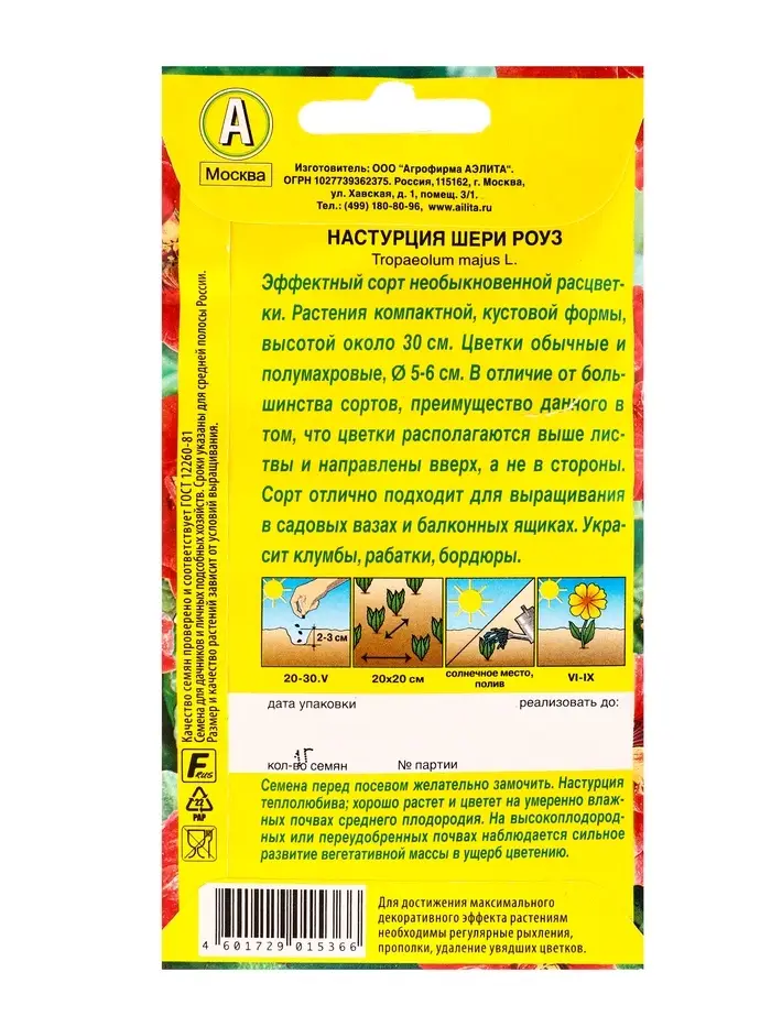 Семена цветов Настурция Шери Роуз , Ц/П,1 г