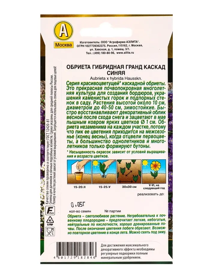 Семена цветов Обриета Гранд каскад синяя Мн Золотая серия, Ц/П,0,05 г