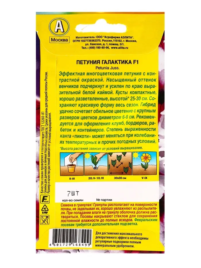 Семена цветов Петуния Галактика F1 обильноцветущая , Ц/П,7 шт.